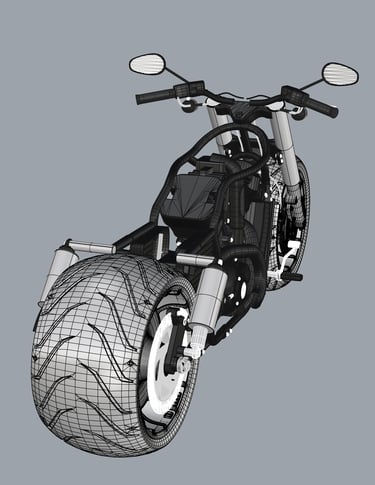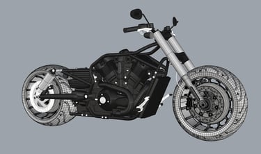 Nupirktas brėžinys neatitinka realybės, todėl teko išmesti nereikalingas detales, pakeisti ratus, motociklo brėžinį priartinti prie to, koks iš tiesų dabar yra motociklas.