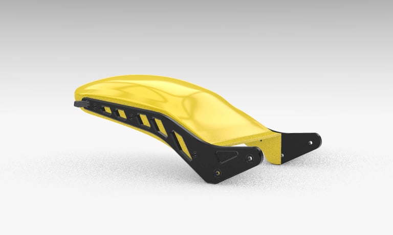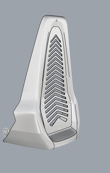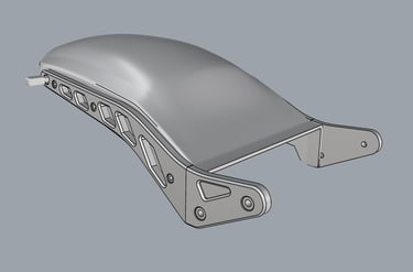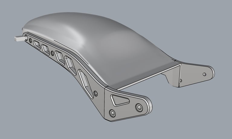 Sugalvotos ir sukurtos kompiuteryje trys pagrindinės apdailos detalės. Priekinis sparnas, galinis sparnas ir radiatoriaus apsauga.