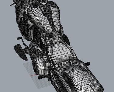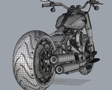Sukurtos kompiuteryje trys pagrindinės apdailos detalės buvo sudėtos ant motociklo modelio ir idėja pristatyta užsakovui. Po patvirtinimo prasidėjo prototipų gamyba